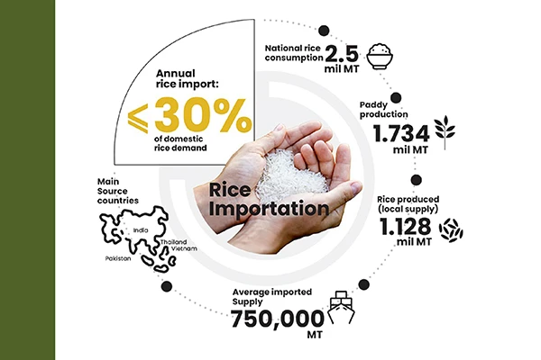- Insufficient Domestic Production: Local rice meets only 70–75% of domestic demand, creating a supply gap.